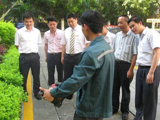 2013年5月31日下午,香蜜二村、香蜜三村服务中心全体管理人员在香蜜三村活动场地开展了现场绿化机械(绿化大剪和绿篱机)使用实操培训,此次培训由小区绿化美容师邱旺成亲自讲解并示范。在邱师傅的耐心讲解和亲自指导下,虽然大家都是初次操作绿化工具,动作不是很熟练,剪草技术更谈不上合格,但看到经过自己用心修剪后的灌木,每个人都感到很开心,切切实实享受了一次绿化美容师的乐趣。